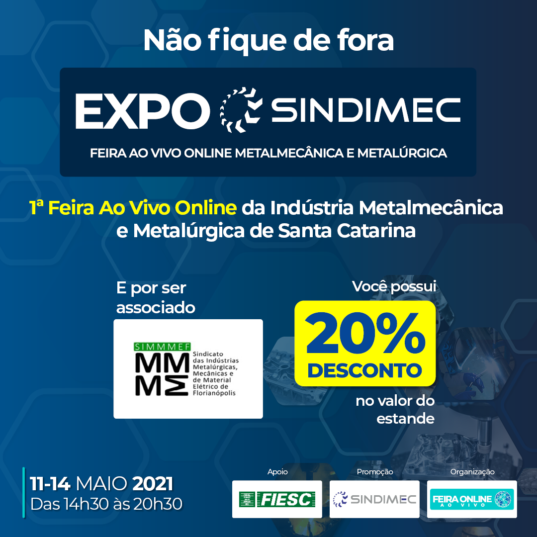 Link da inscrição: https://lp.feiraonlineaovivo.com.br/expo-sindimec-quero-expor